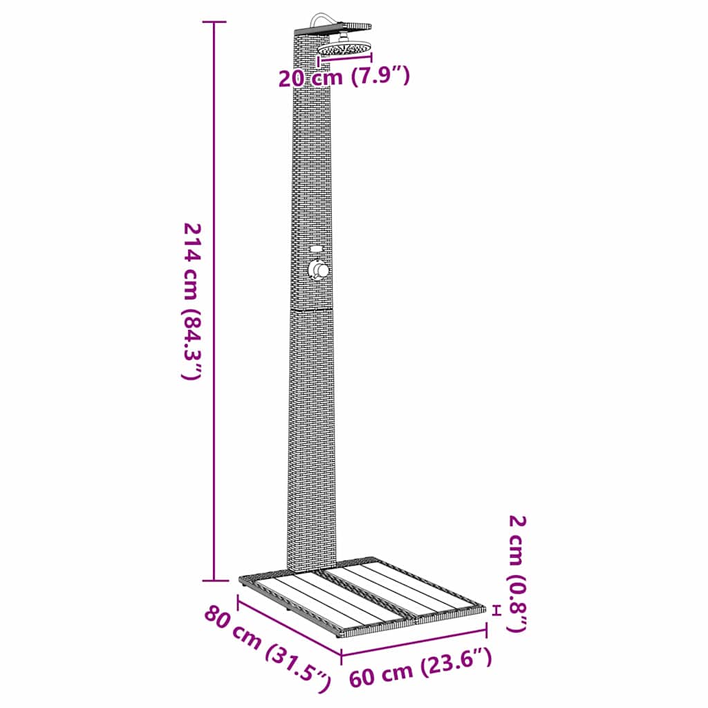Doccia da giardino Grigio 60 x 80 x 214 cm Poly Rattan 42003416