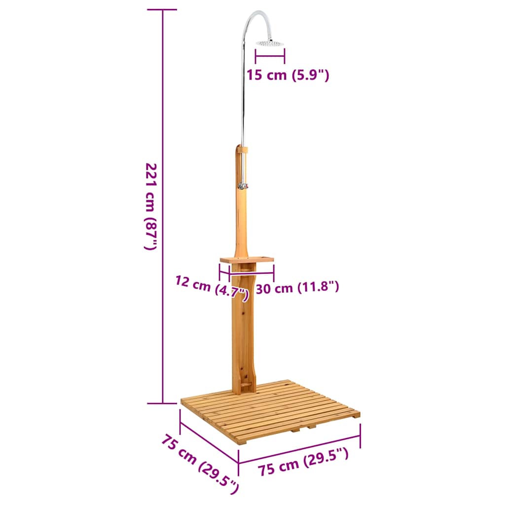 Questa doccia da giardino in legno è realizzata in legno massello e abete, entrambi caratterizzati da assoluta resistenza agli agenti atmosferici e lunga durata.Essendo in grado di resistere alla luce solare, alla pioggia e al gelo, la doccia da giardino in legno è l'ideale per rinfrescarsi in giardino, in campeggio o dopo una nuotata all'aperto.Un ugello doccia girevole e un livello regolabile per la pressione dell'acqua sono progettati per un uso più conveniente.