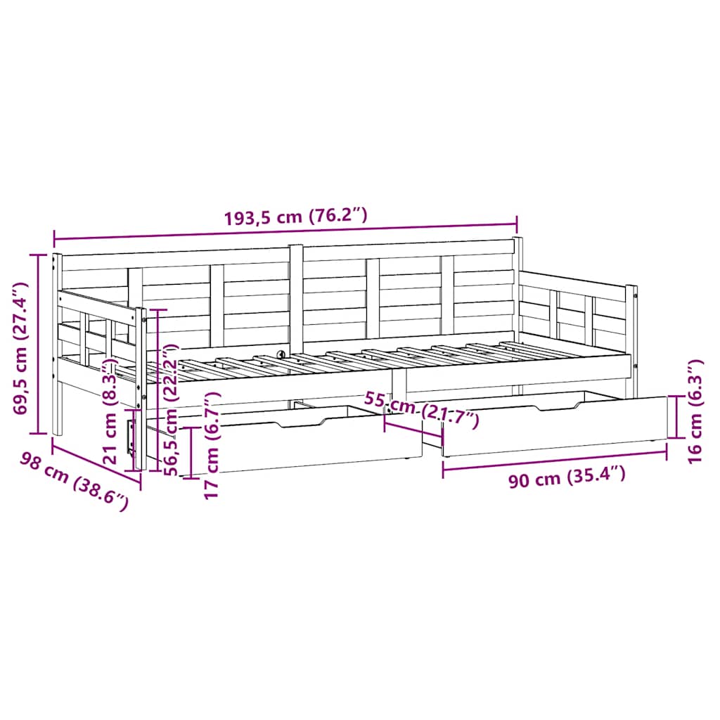 Dormeuse con Cassetti Bianco 90x190 cm Legno Massello di Pino 3302143
