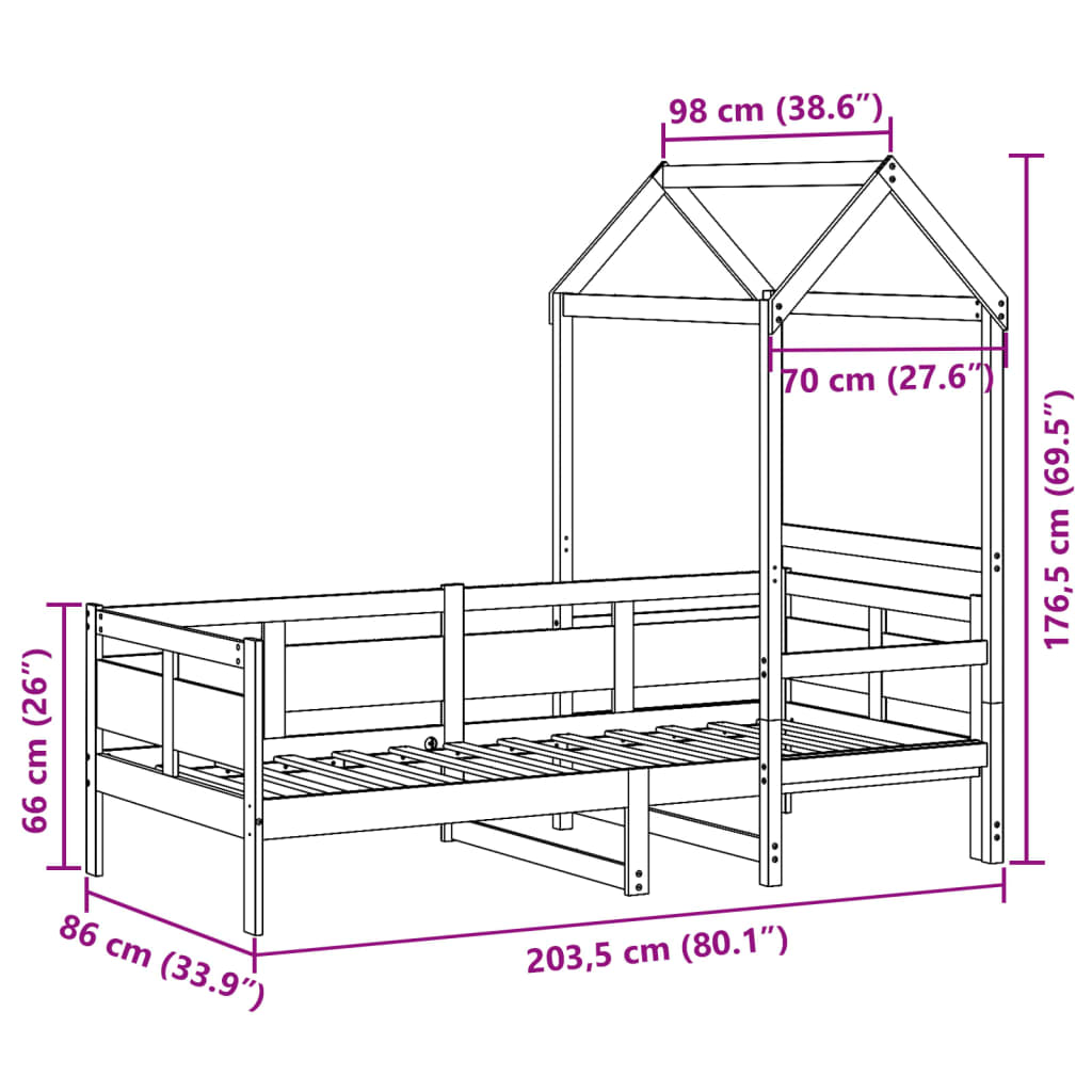 Dormeuse con Tetto 80x200 cm Bianco in Legno Massello di Pino 3282291