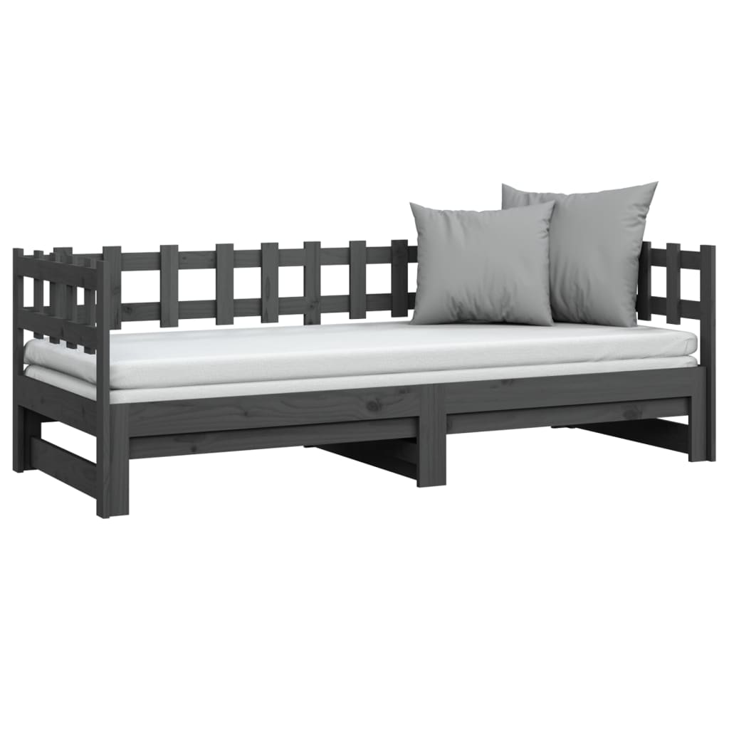 Dormeuse Estraibile Grigia 2x(90x190) cm Legno Massello di Pino 820778