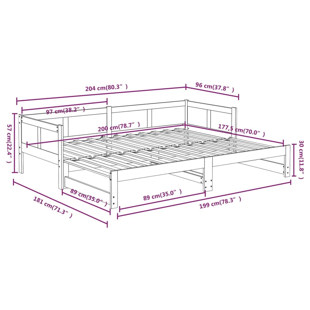 Dormeuse Estraibile Legno Massello Pino 2x(90x200) cm 820252