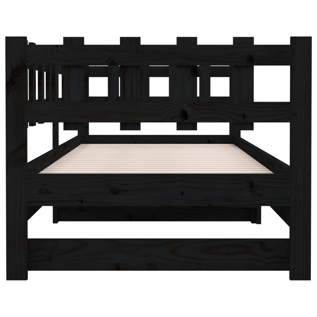 Dormeuse Estraibile Nera 2x(90x200) cm Legno Massello di Pino 820775
