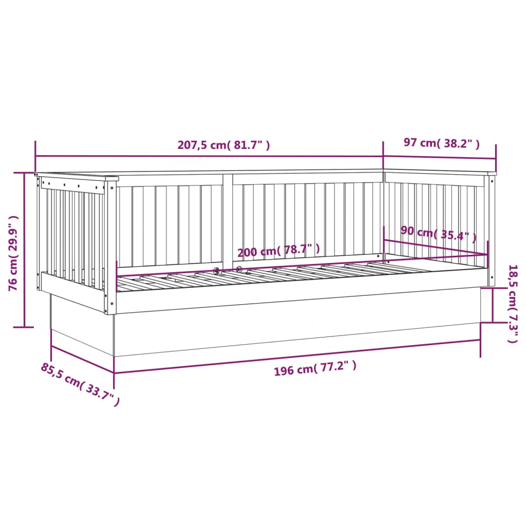 Dormeuse Grigia 90x200 cm in Legno Massello di Pino 821566