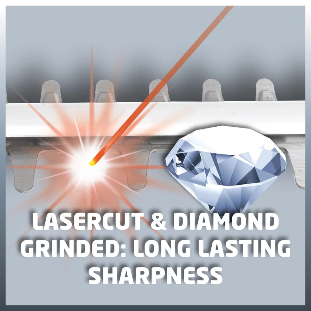 Le lame in acciaio tagliate a laser e diamantate offrono una qualità di taglio eccellente, mentre l'ergonomica maniglia secondaria offre una comoda e robusta presa.