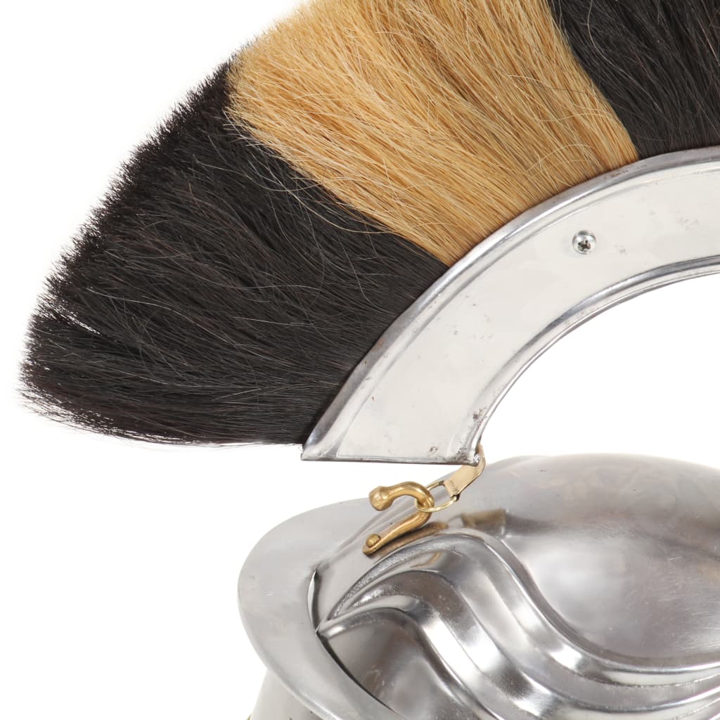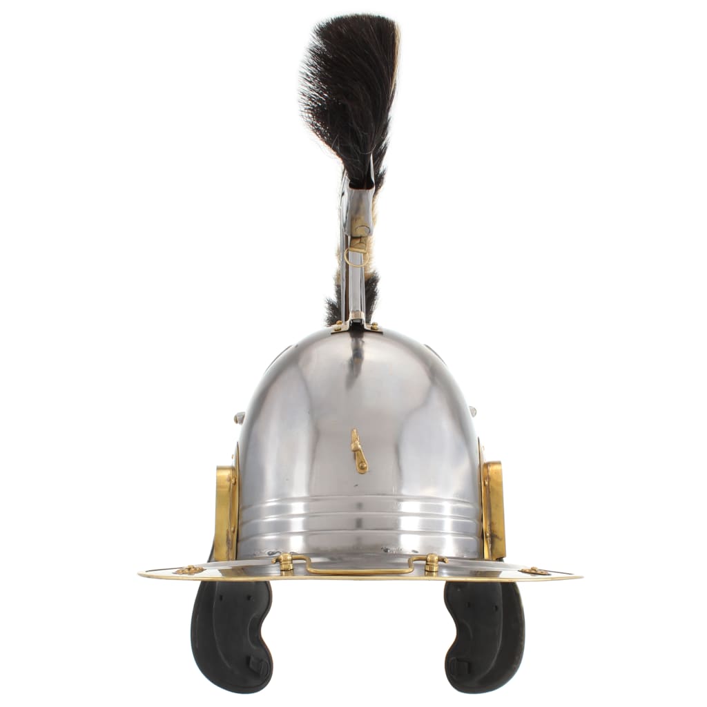 L'elmetto da armatura è una replica esatta di un originale elmo da soldato romano. Realizzato in acciaio calibro 18, combina stile antico e materiale robusto in un elmo accattivante, che si abbina perfettamente al vostro abbigliamento da guerriero. Il nostro elmo da parata ha una parte superiore arrotondata e due protezioni per le guance a cerniera appese ai lati. Dotato di avanzate funzioni protettive e pennacchio, offre un'ottima protezione alla testa di chi lo indossa senza essere ostruttivo. Inoltre, è anche un bel pezzo da esposizione.