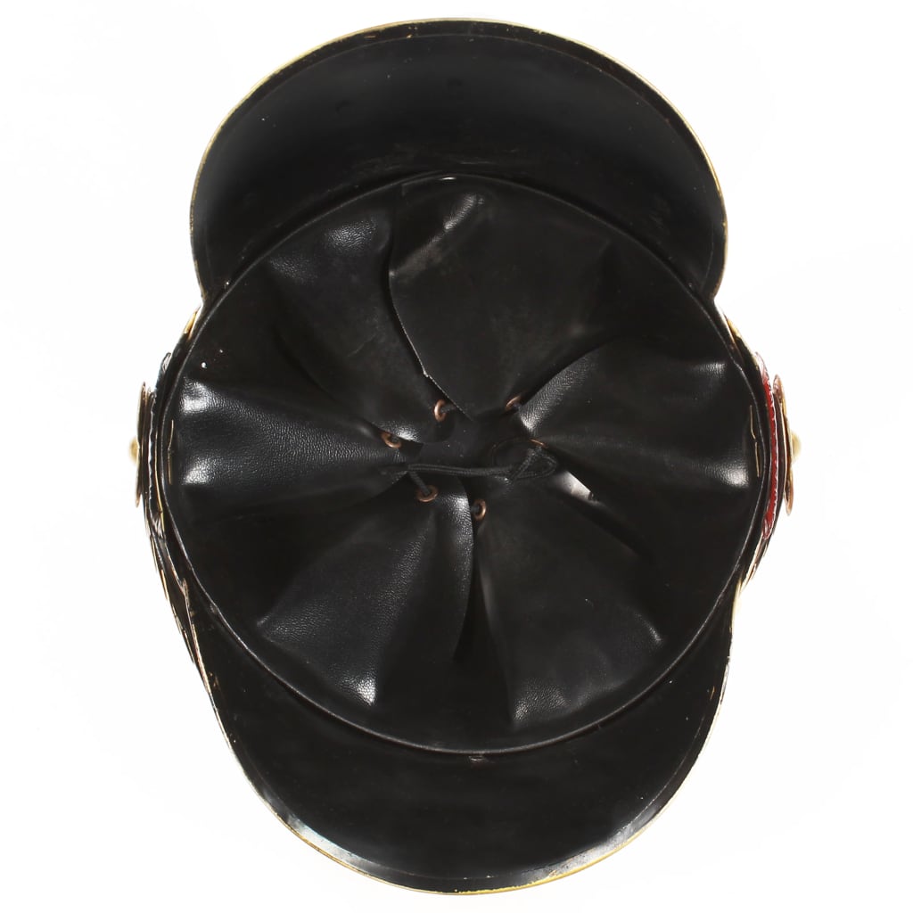 Questo è un elmo del Kaiser Tschako, ufficiale del Granducato d'Assia ed è una replica esatta di un originale elmetto da soldato tedesco. Realizzato in acciaio calibro 18 lucido con bordi in ottone, combina stile antico e materiale robusto in un casco accattivante, che si abbina perfettamente al vostro abbigliamento da soldato. Inoltre, è anche un bel pezzo da esposizione ed è perfetto per costumi ed eventi.
