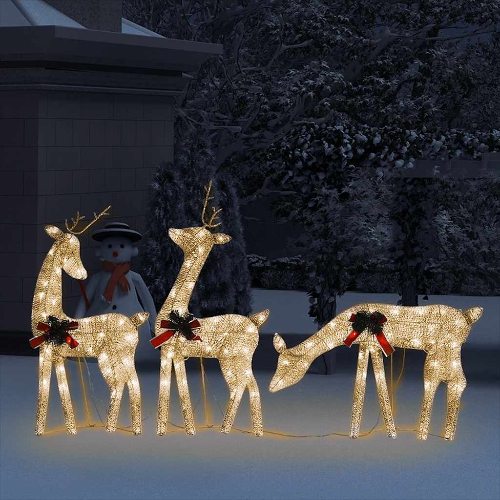 Famiglia Renne Natalizie 270x7x90 cm in Rete Oro Bianco Caldo 328503