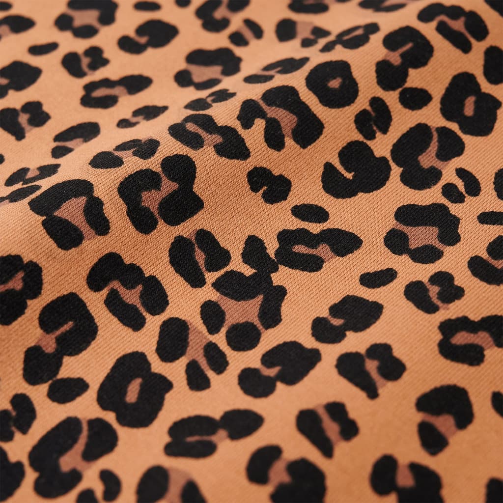 Questa felpa da bambina ha le maniche lunghe, una stampa leopardata, un dolcevita ondulato, e una vestibilità ampia. Questo capo d'abbigliamento per bambine color cognac chiaro presenta un orlo ondulato con un bordo leggermente arrotolato. Il top per bambine è realizzato in un materiale morbido composto dal 95% in cotone e dal 5% in elastan, per offrire un comfort e un calore maggiori.