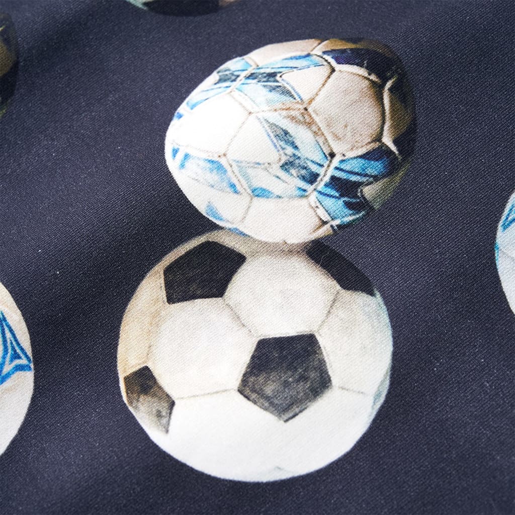 Questa felpa per bambini ha maniche lunghe, girocollo, e bordi a costine sui polsini, sul collo, e sul bordo inferiore. Questa felpa presenta le stampe di palloni da calcio. Il top per bambini è realizzato al 95% in cotone e al 5% in elastan, trattato con un lavaggio al silicone e agli enzimi per conferire un tocco morbido e confortevole.