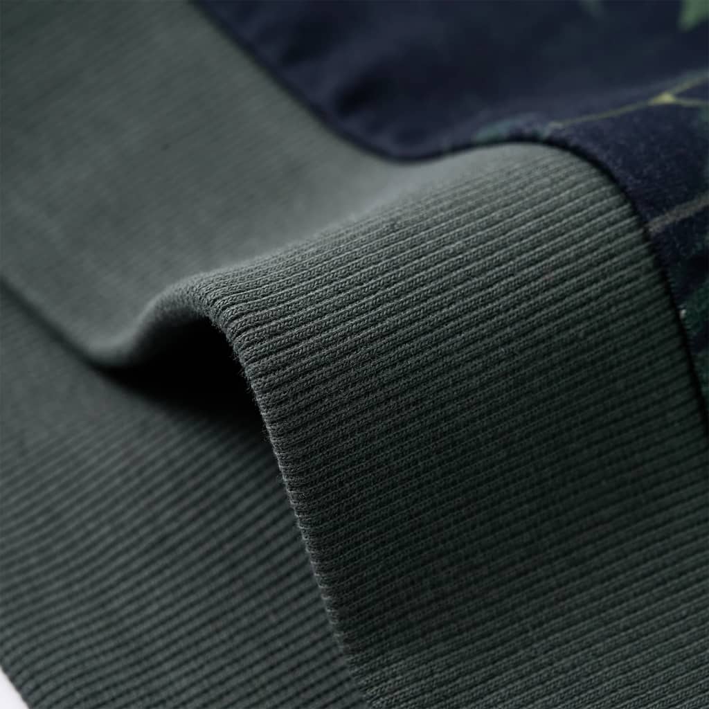 Questa felpa per bambini ha maniche lunghe, girocollo, e bordi a costine sui polsini, sul collo, e sul bordo inferiore. Questa felpa presenta una scimmia circondata da foglie. Il top per bambini è realizzato al 92% in cotone e all'8% in poliestere per offrire morbidezza e comfort. La morbida fodera in pile della felpa per bambini offre un maggiore calore.