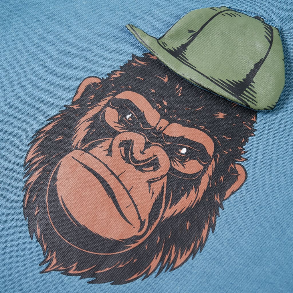 Questa felpa per bambini ha maniche lunghe, girocollo, e bordi a costine sui polsini, sul collo, e sul bordo inferiore. La felpa per bambini presenta un gorilla con un cappello. Il top per bambini è realizzato in un materiale morbido composto dal 92% in cotone e dall'8% in poliestere per offrire comfort e traspirabilità. La morbida fodera in pile offre un maggiore calore.