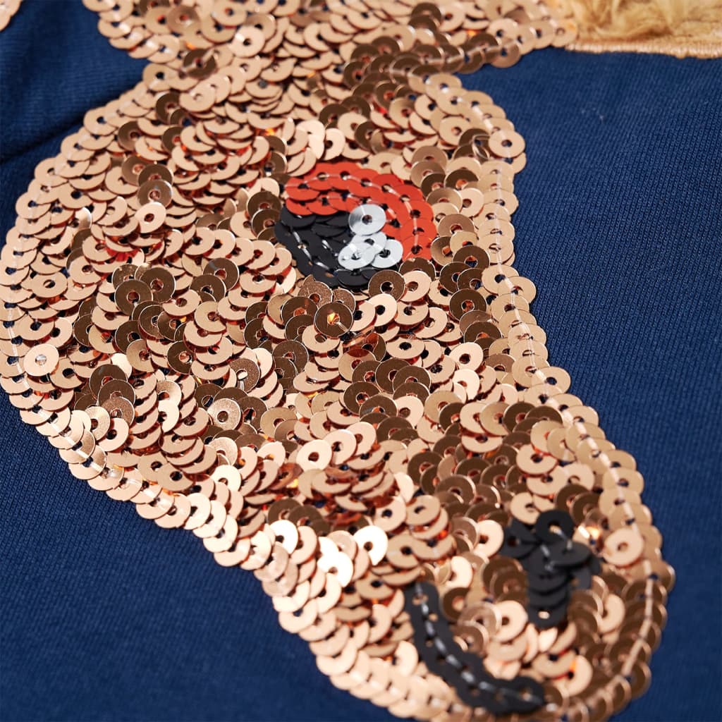 Questa felpa per bambini ha maniche lunghe, girocollo, e bordi a costine sui polsini, sul collo, e sul bordo inferiore. Il top per bambini ha un bellissimo color blu marino con una giraffa in paillettes su una manica, che lo rende più simpatico. La felpa per bambine è realizzata al 95% in cotone e al 5% in elastan per offrire comfort e traspirabilità. La morbida fodera in pile offre un maggiore calore.