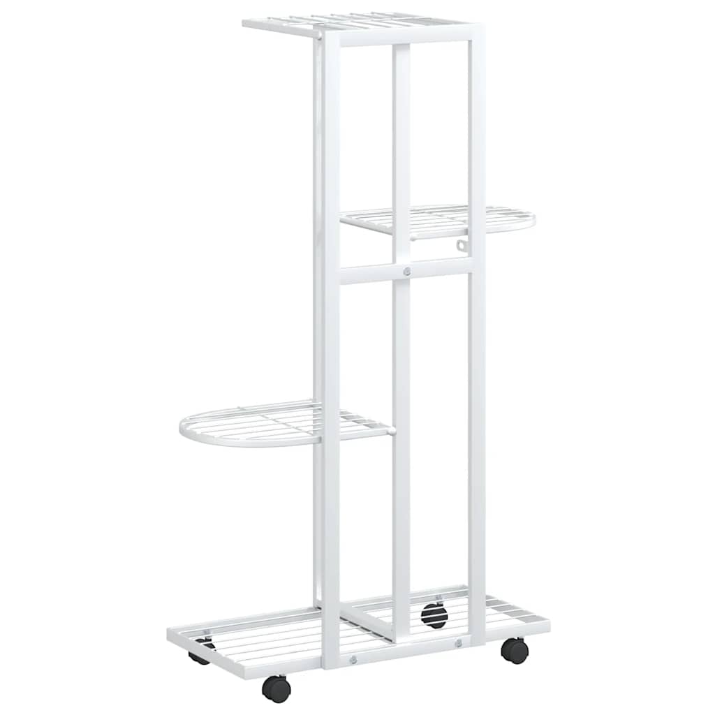 Fioriera a 4 Piani con Ruote 44x23x80 cm Ferro Bianco 343116