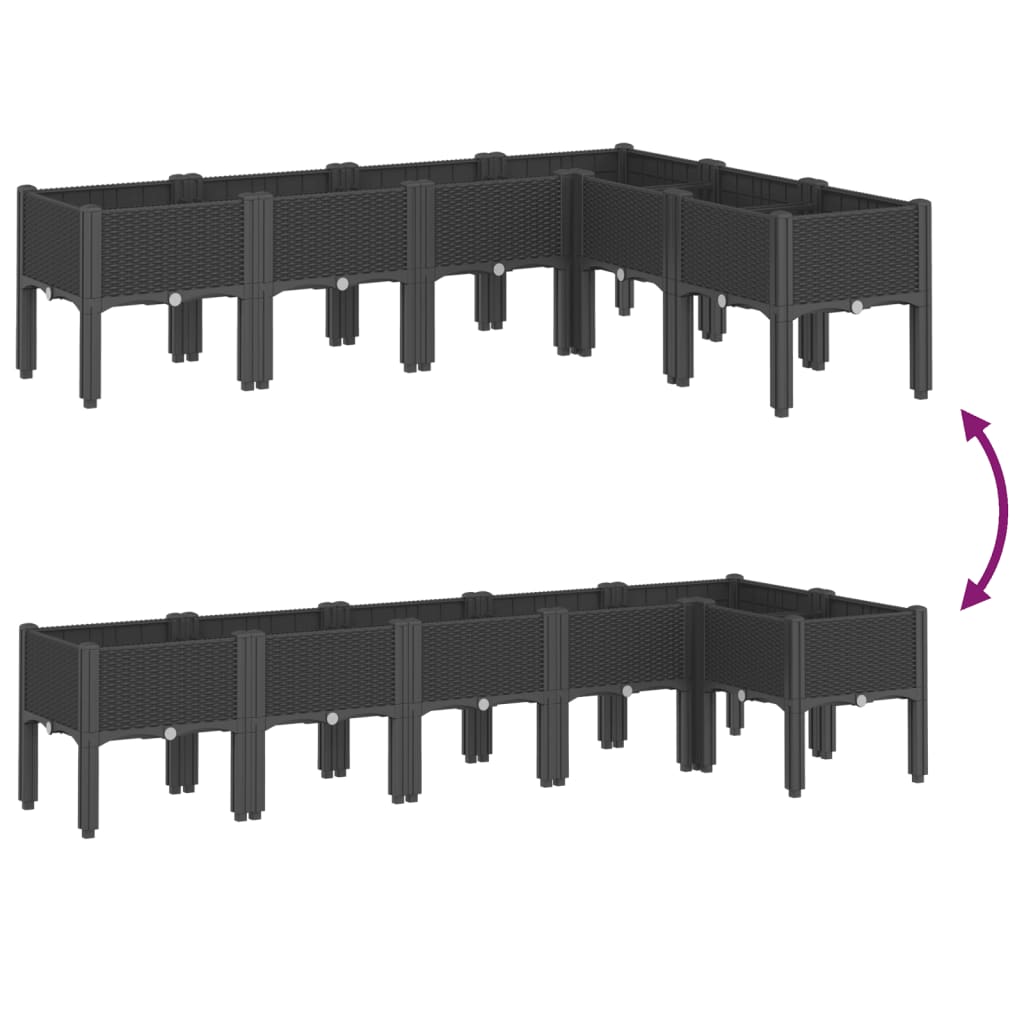 Fioriera da Giardino con Gambe Nera 160x120x42 cm in PP 367908