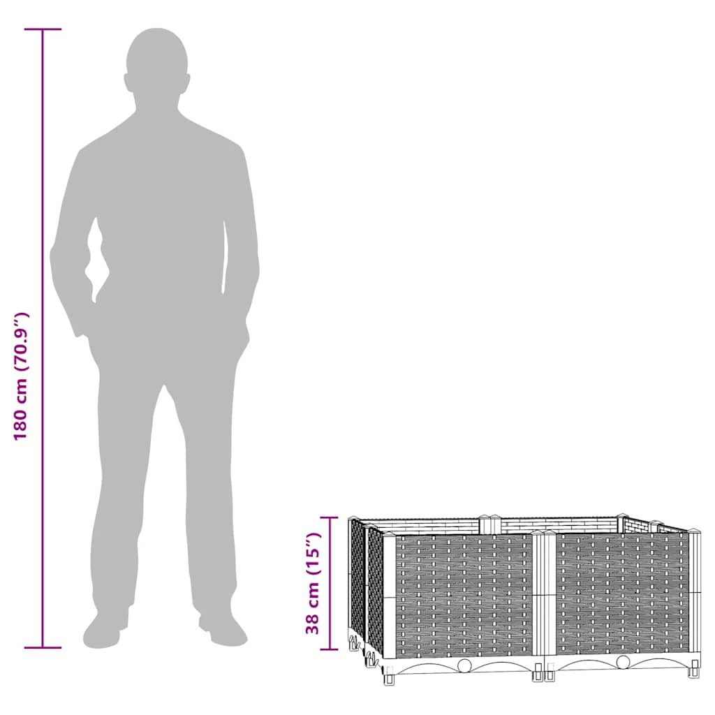 Questa fioriera è realizzata in polipropilene, essendo robusta, resistente e adatta per l'uso esterno. Il vaso da giardino è abbastanza profondo e largo da contenere una grande quantità di terreno e offre ampio spazio per piante, verdure, erbe e fiori. Create uno sfondo incantevole per le vostre piante con questa elegante aiuola!