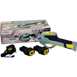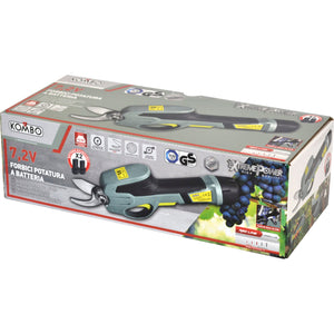 La scatola contiene: Forbici a batteria 2 Batterie al Litio e Caricabatterie
