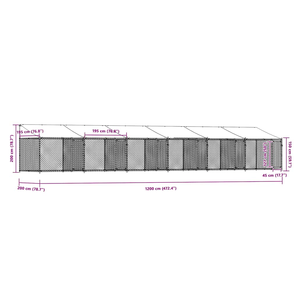 Gabbia Cani con Tetto e Porte Grigia 12x2x2 m Acciaio Zincato 3209567