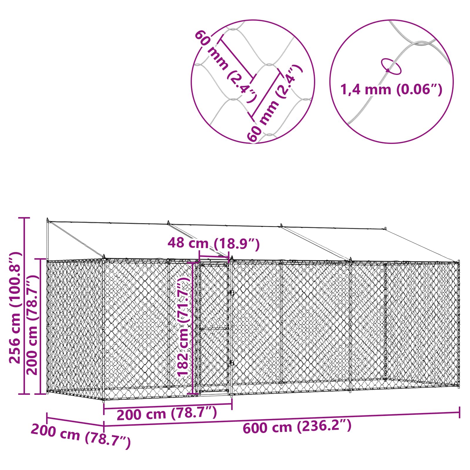 Gabbia per Cani con Tetto Argento 600 x 200 x 256 cm 3368302