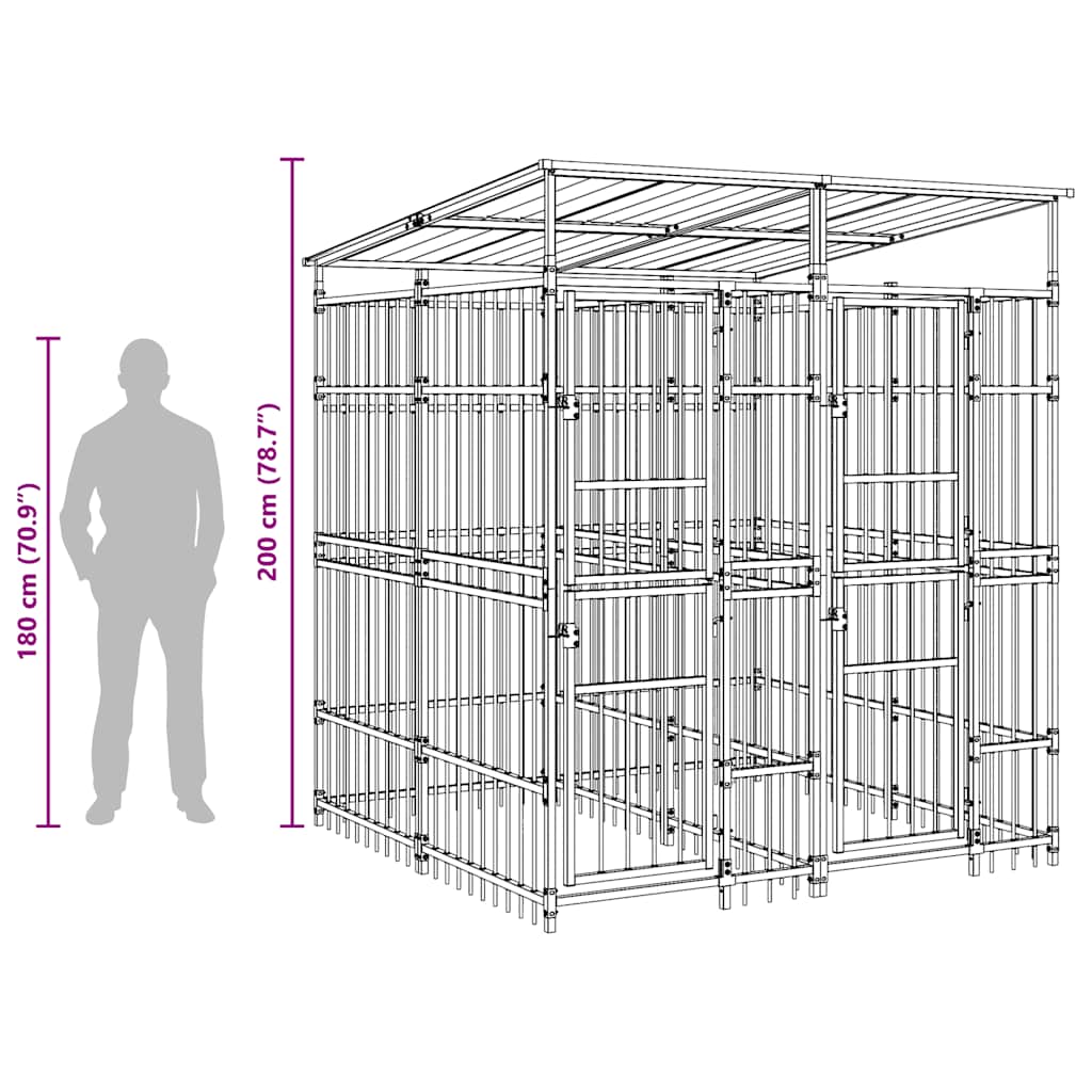 Gabbia per Cani da Esterno con Tetto in Acciaio 3,69 m² 3097947
