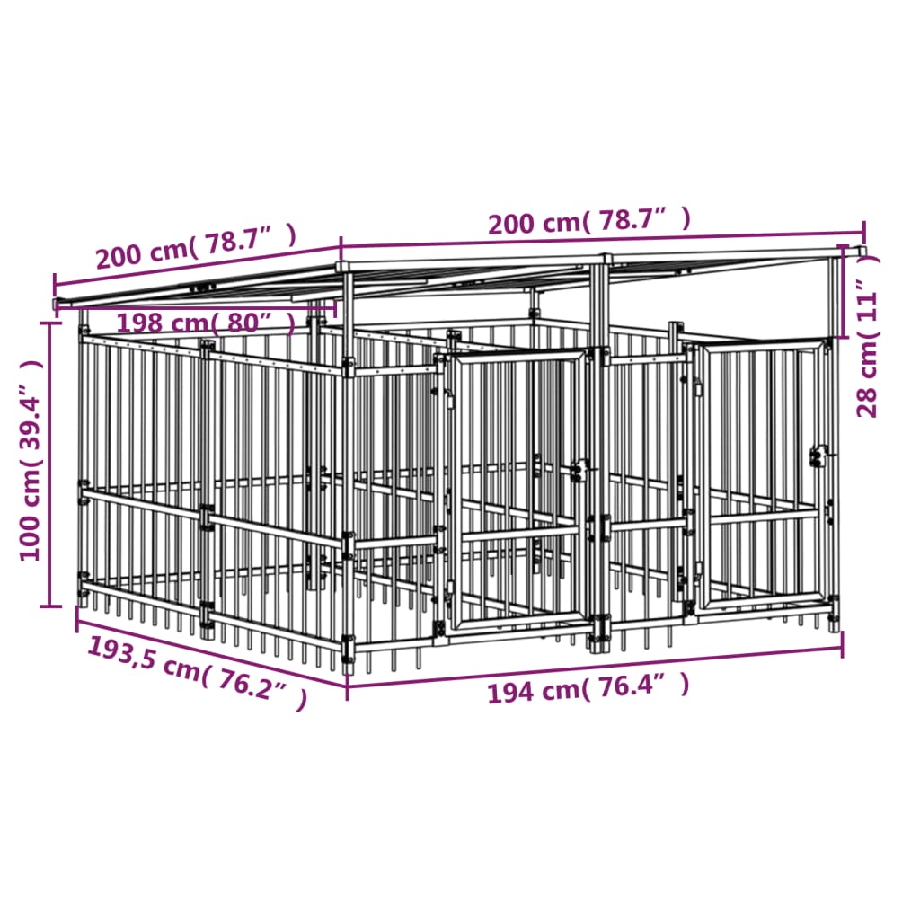 Gabbia per Cani da Esterno con Tetto in Acciaio 3,75 m² 3124589