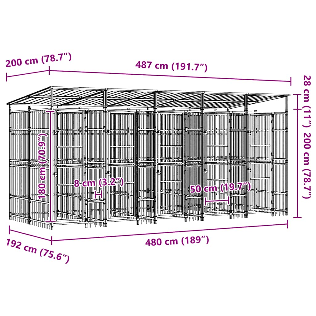 Gabbia per Cani da Esterno con Tetto in Acciaio 9,22 m² 3097950