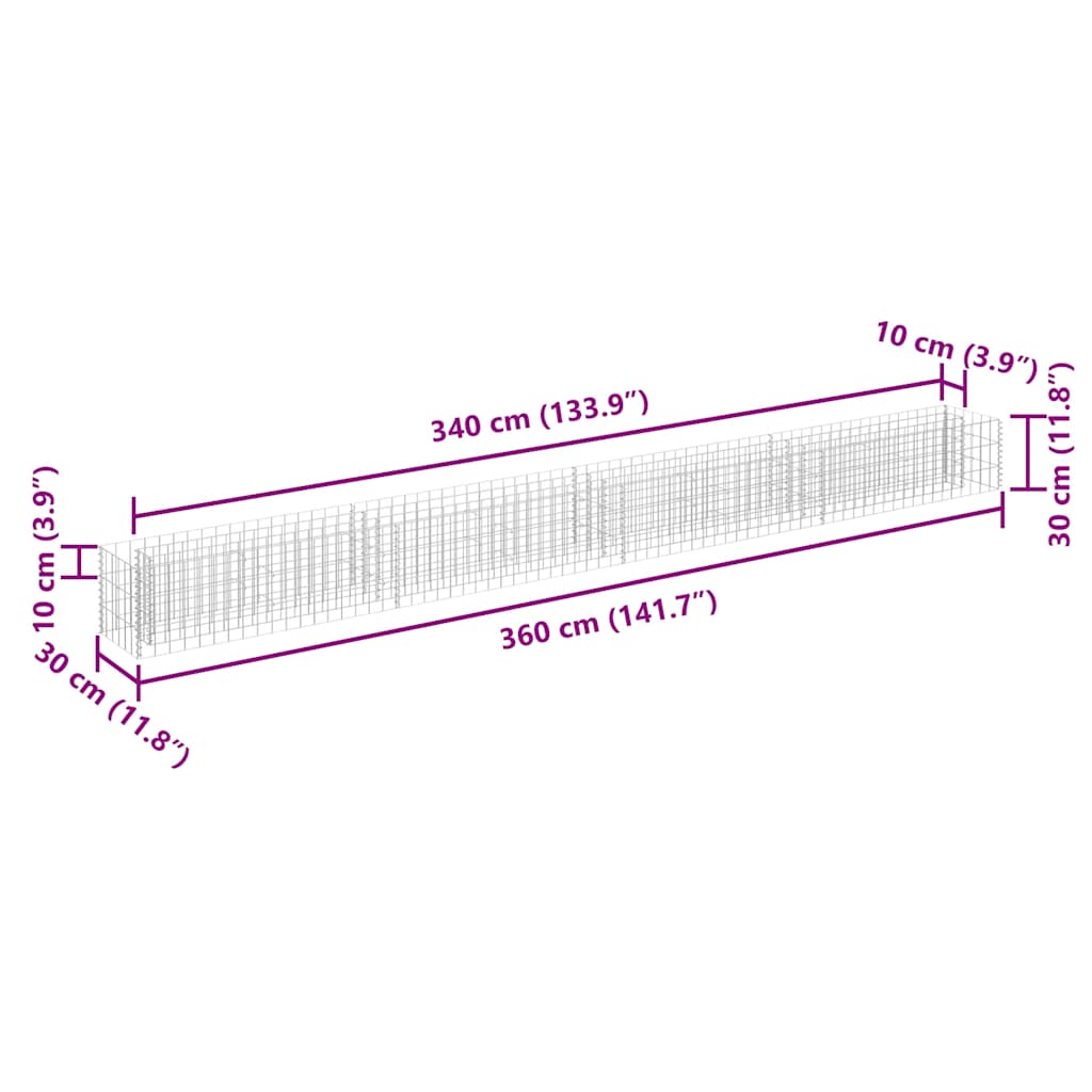 Gabbione Letto Rialzato in Acciaio Zincato 360x30x30 cm 145641