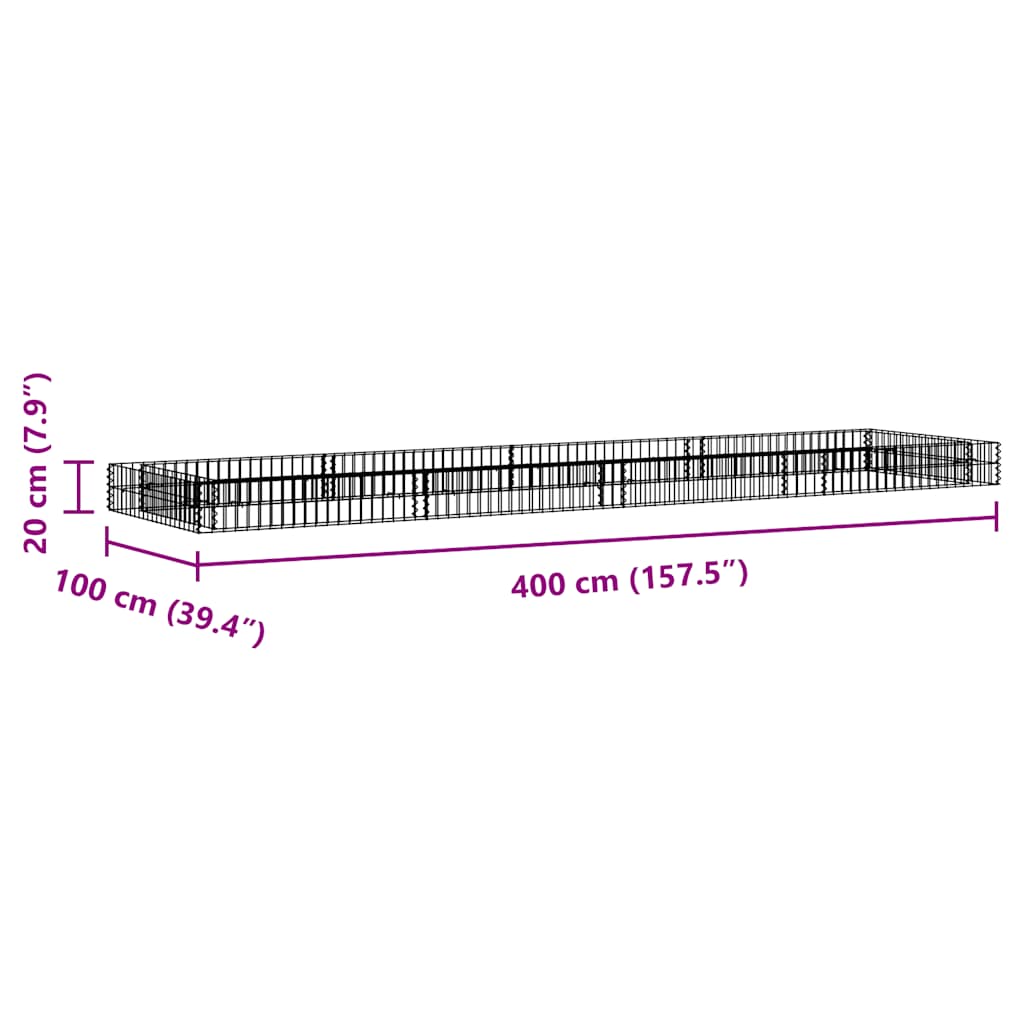 Gabbione Letto Rialzato in Acciaio Zincato 400x100x20 cm 151314
