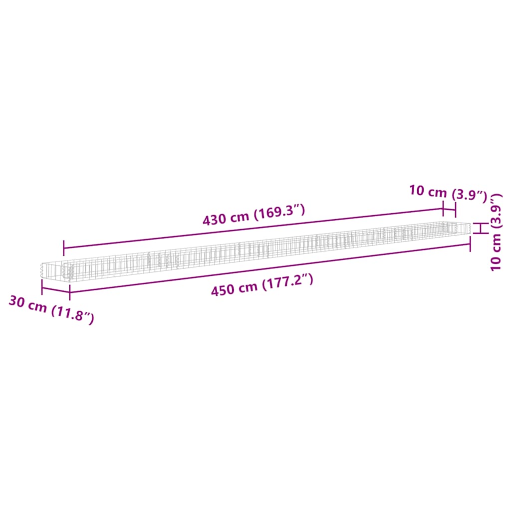 Gabbione Letto Rialzato in Acciaio Zincato 450x30x10 cm 145644