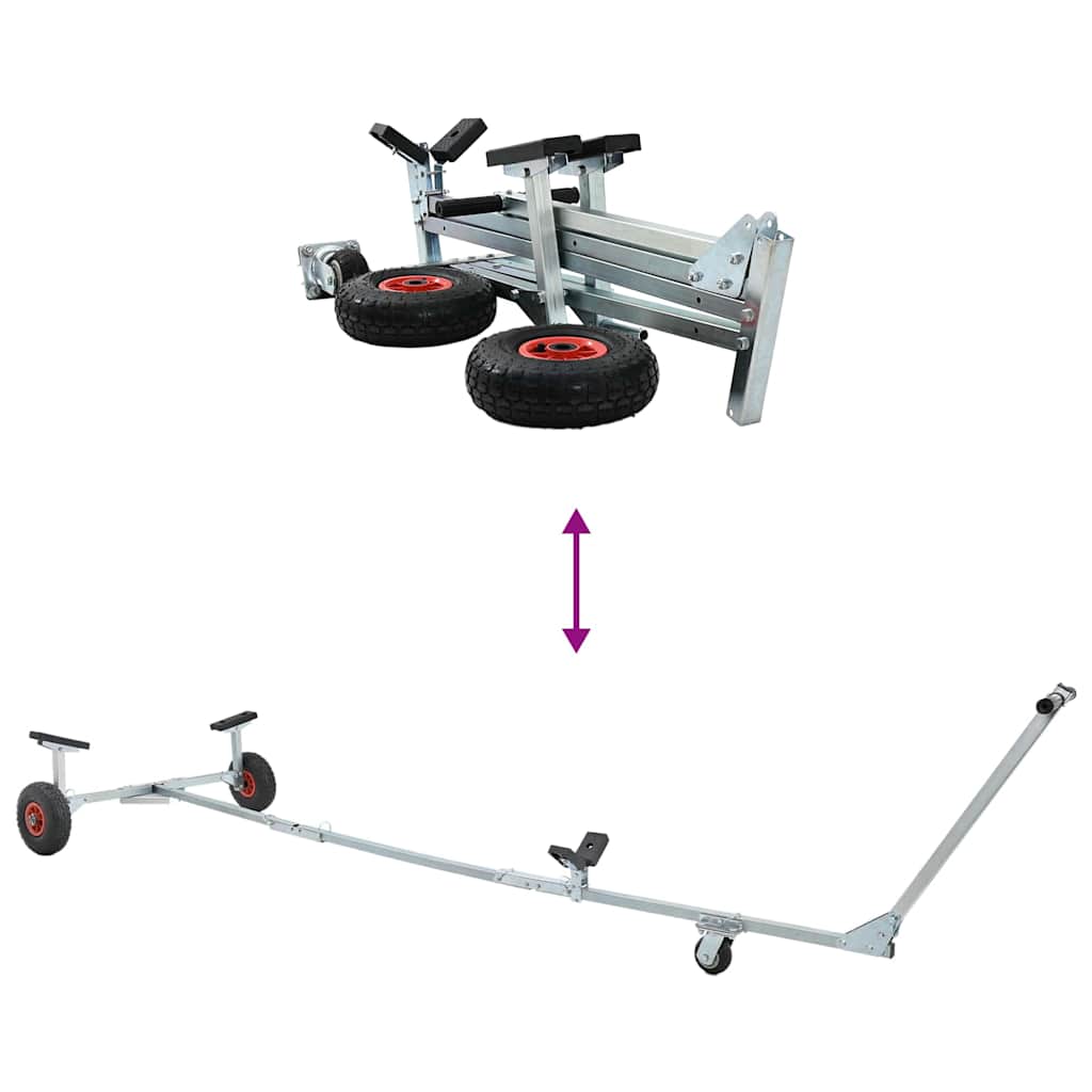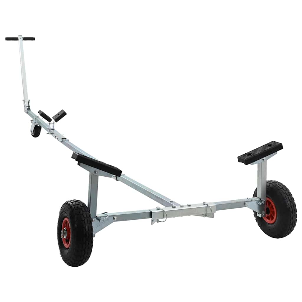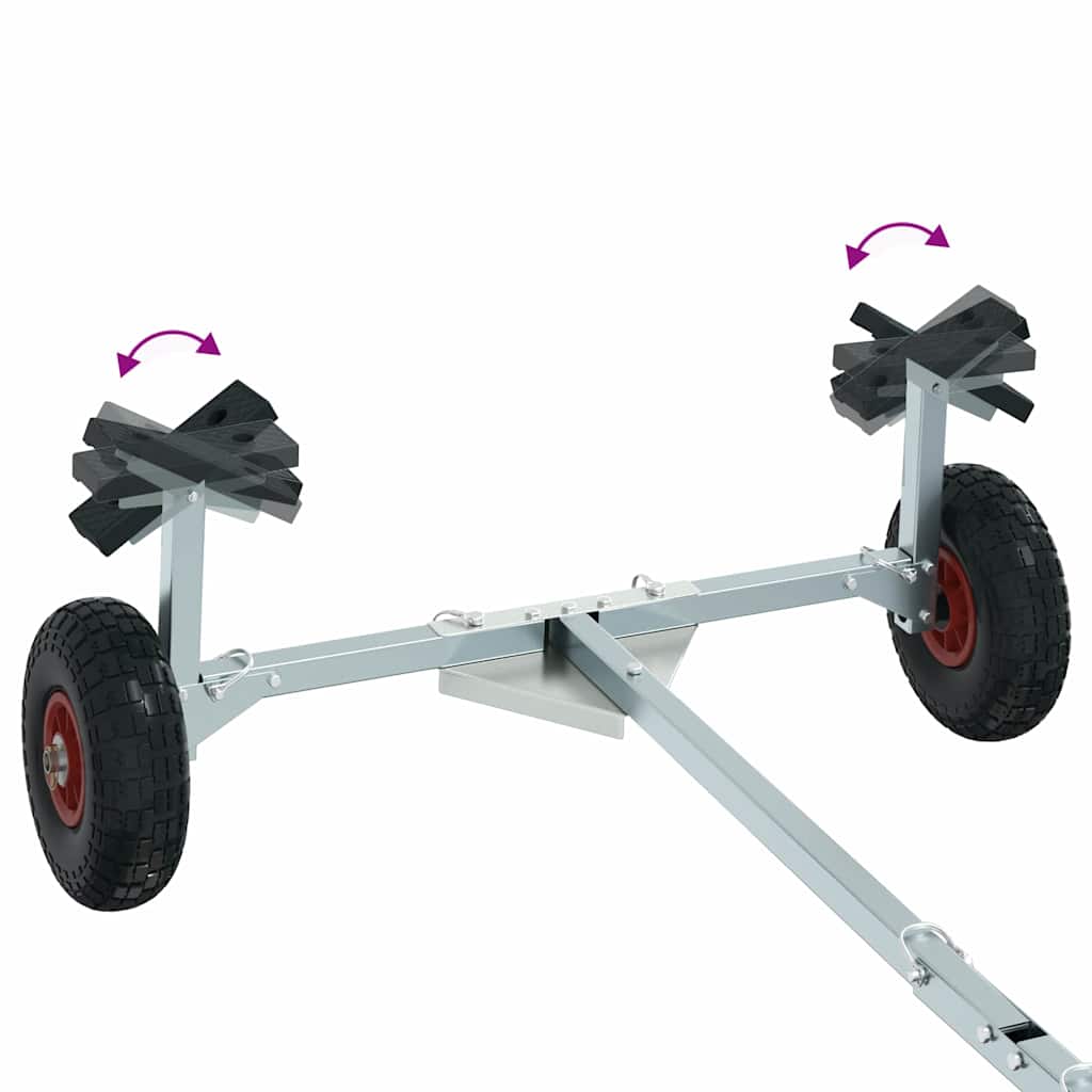 Con questo rimorchio per barche, puoi trasportare la tua imbarcazione in modo facile e sicuro. È progettato per affrontare condizioni esterne difficili e perfetto per raggiungere le tue zone di pesca preferite. Ha un look industriale con una struttura forte e duratura che è sia bella che pratica. La finitura argento lo rende un ottimo complemento in giardino o sul terrazzo.