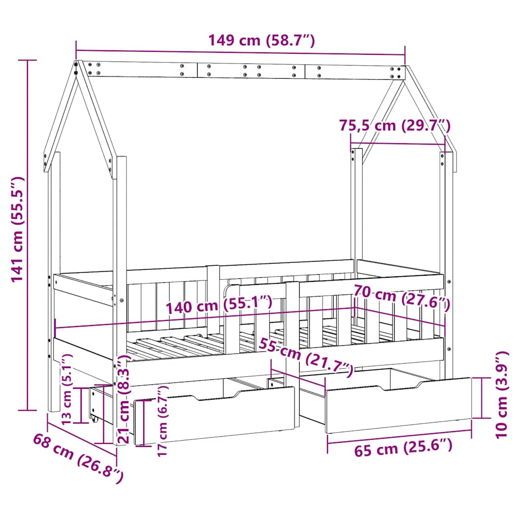 Giroletto Bambini con Cassetti 70x140 cm Legno Massello di Pino 3302046