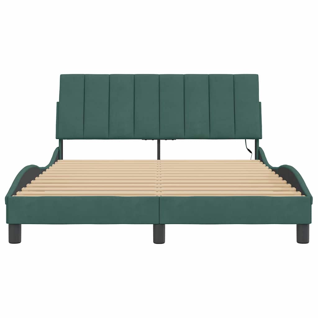 Giroletto con LED senza Materasso Hanko Verde Scuro 140x200 cm in Velluto 3213784