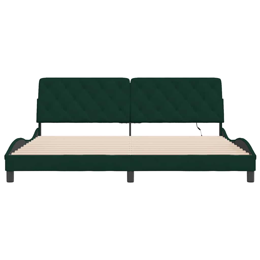 Giroletto con LED senza Materasso Verde Scuro 200x200 cm in Velluto 3213876