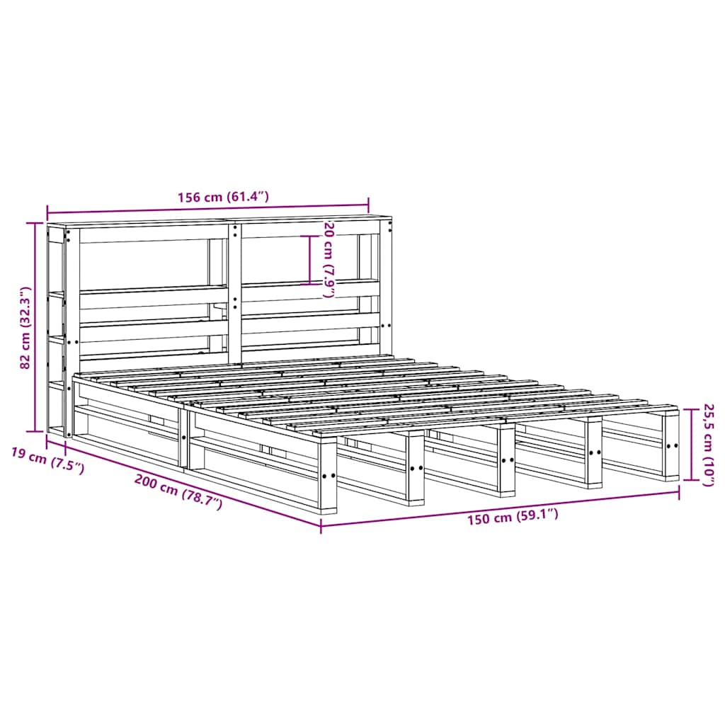 Giroletto con Testiera 150x200 cm in Legno Massello di Pino 3306498