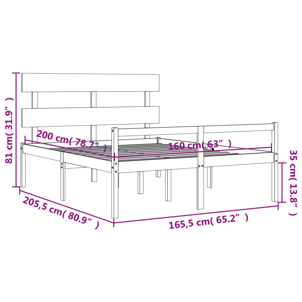 Letto per Anziani con Testiera 160x200 cm in Legno Massello 3195361