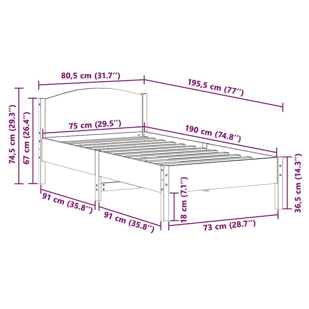 Letto senza Materasso 75x190 cm in Legno Massello Pino 842626