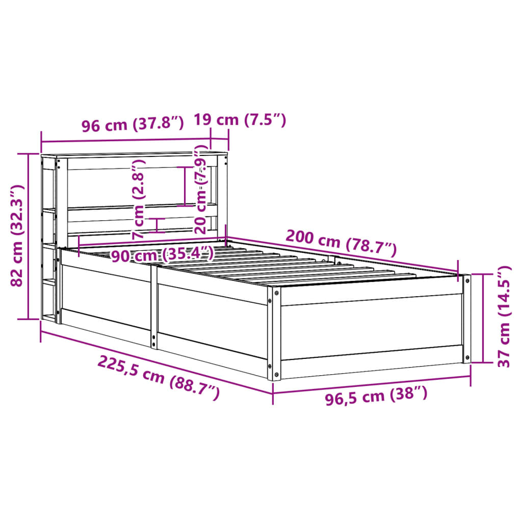Giroletto con Testiera 90x200 cm in Legno Massello di Pino 3306351