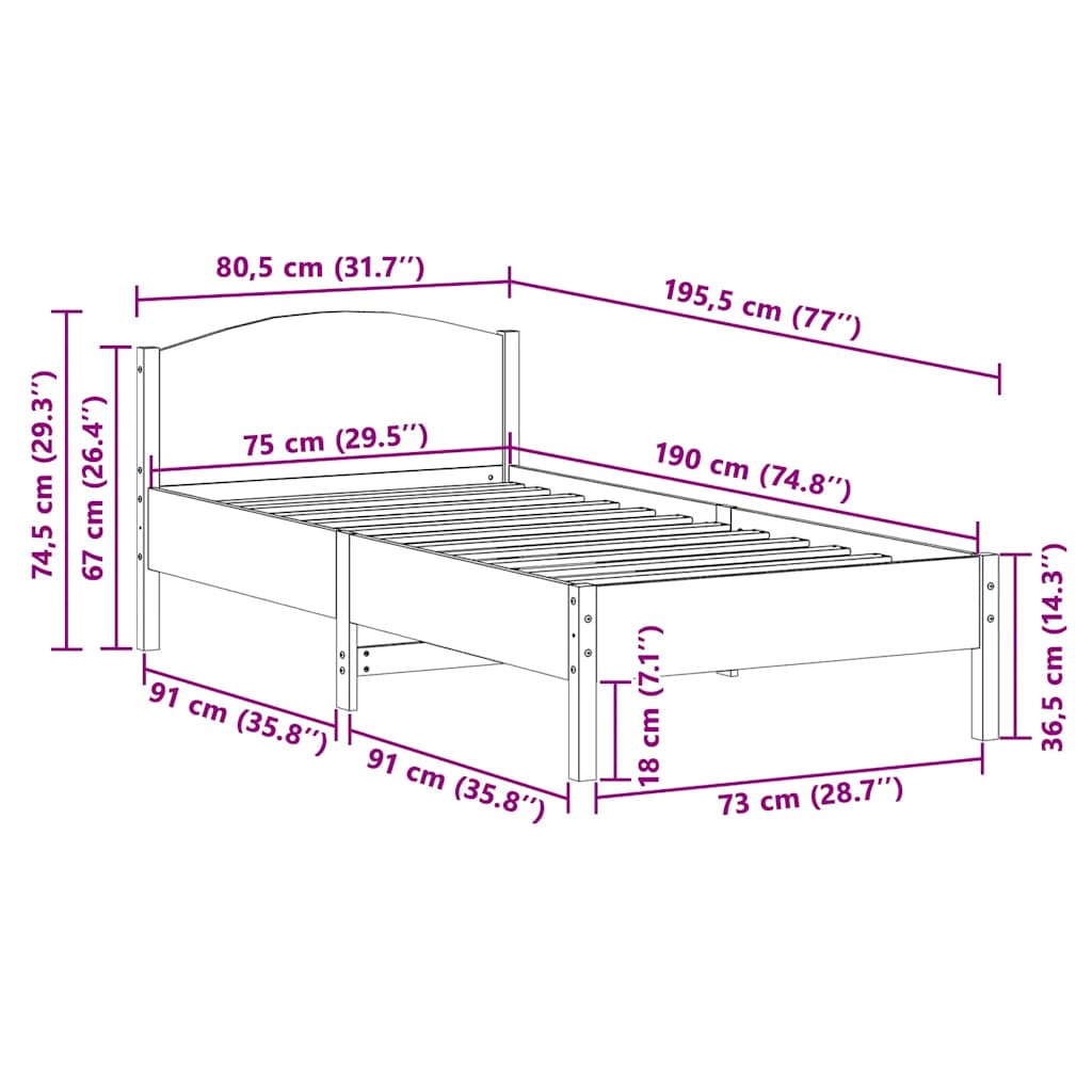 - Dimensioni materasso adatto: 75 x 190 cm (L x L) (materasso non incluso)
