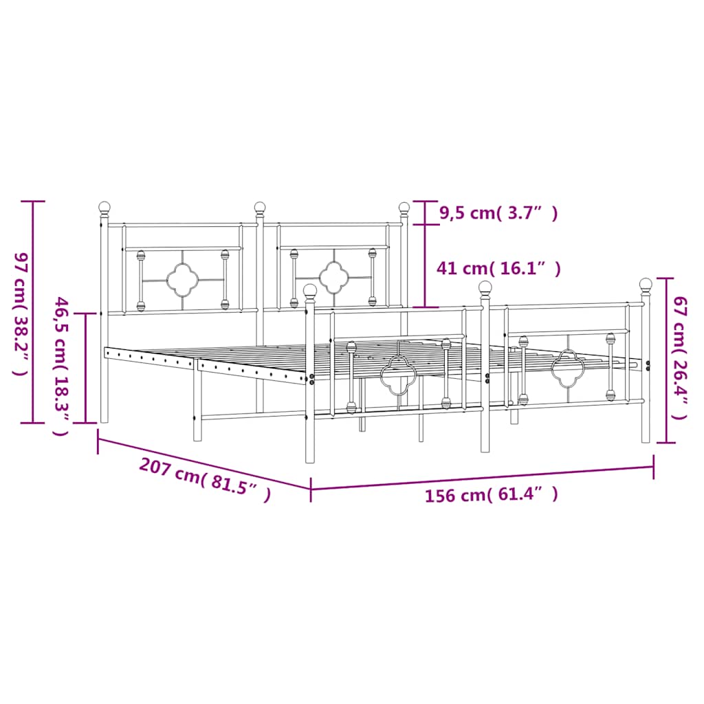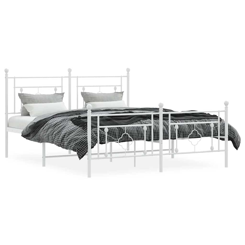 Giroletto con Testiera e Pediera Metallo Bianco 150x200 cm 374408