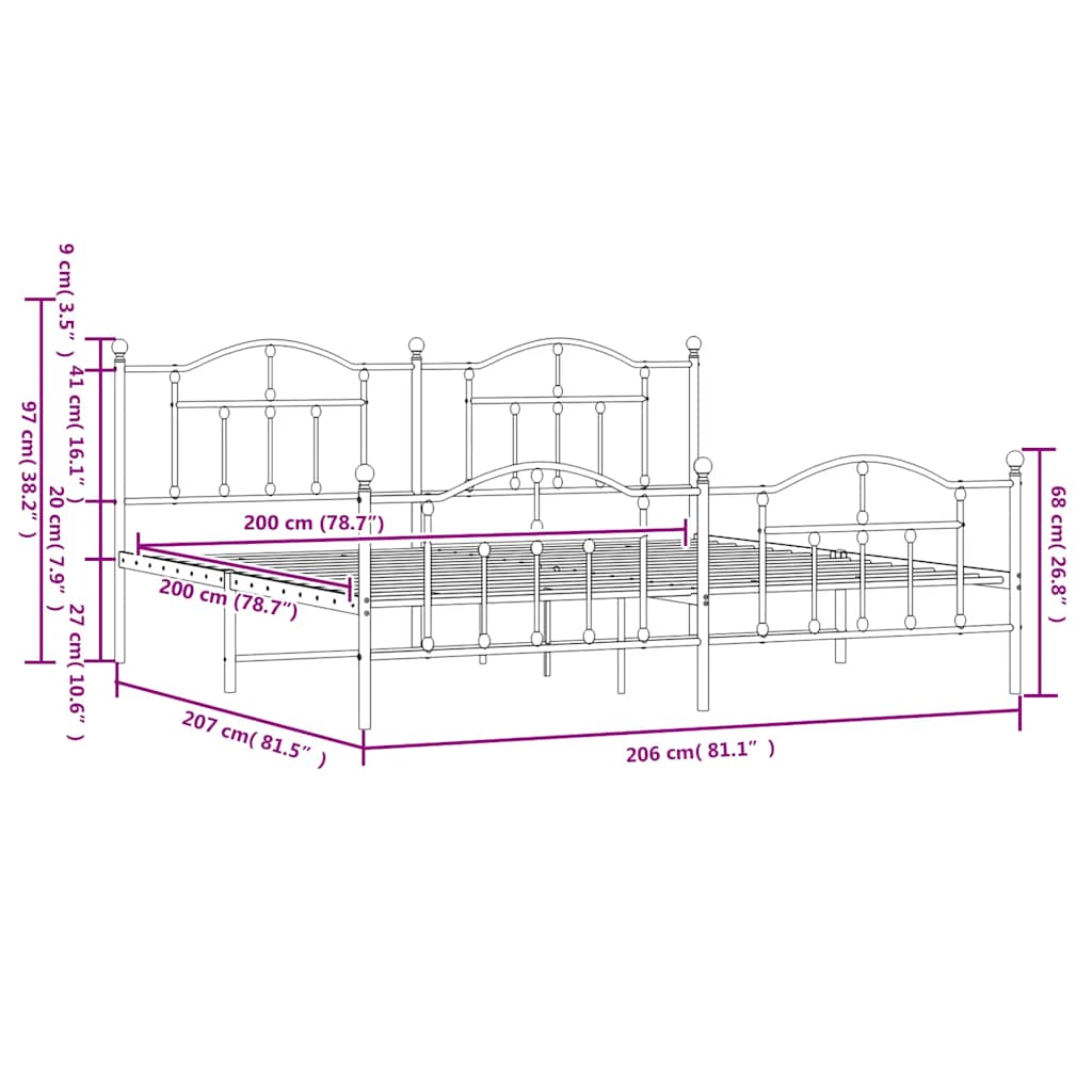 Giroletto con Testiera e Pediera Metallo Bianco 200x200 cm 353513