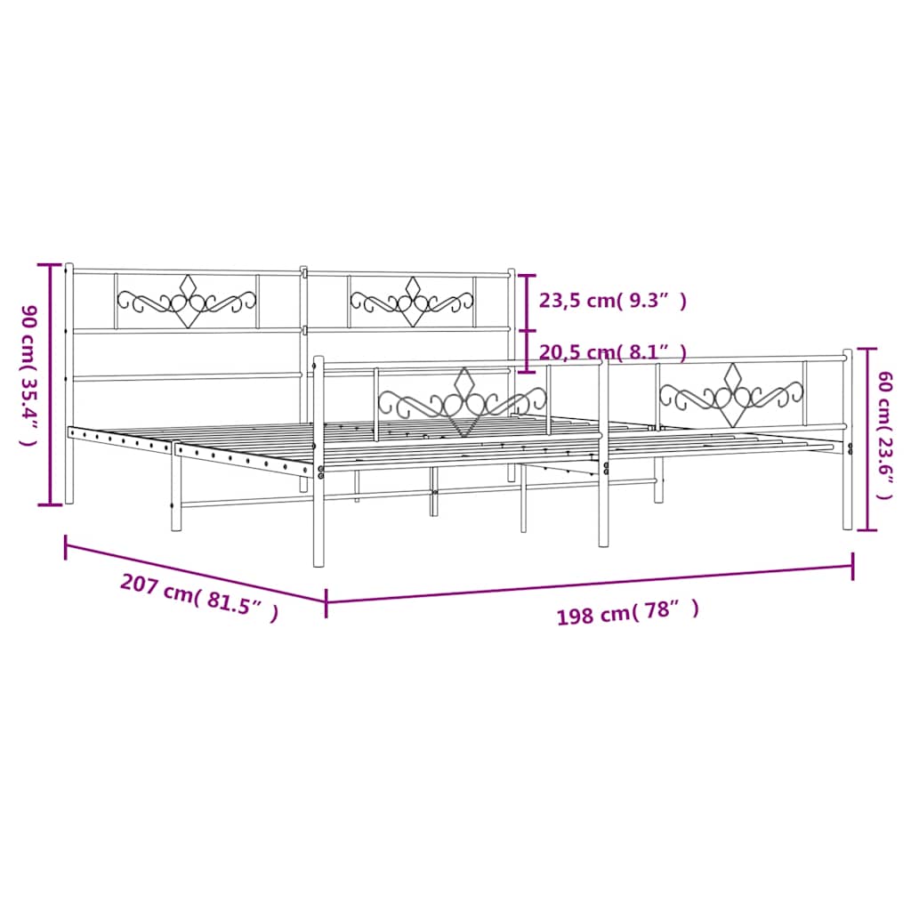 Giroletto con Testiera e Pediera Metallo Nero 193x203 cm 355291