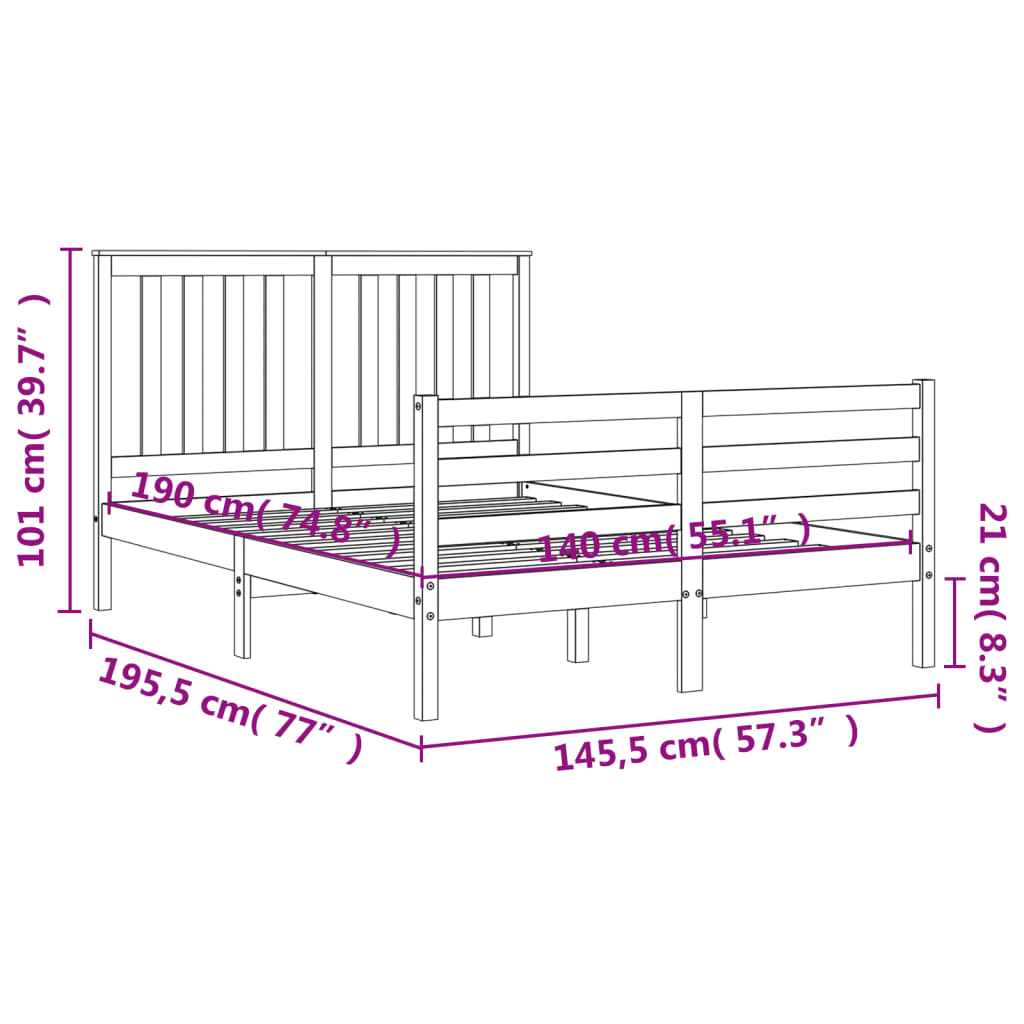 Giroletto con Testiera Grigio 140x190 cm in Legno Massello 3194228