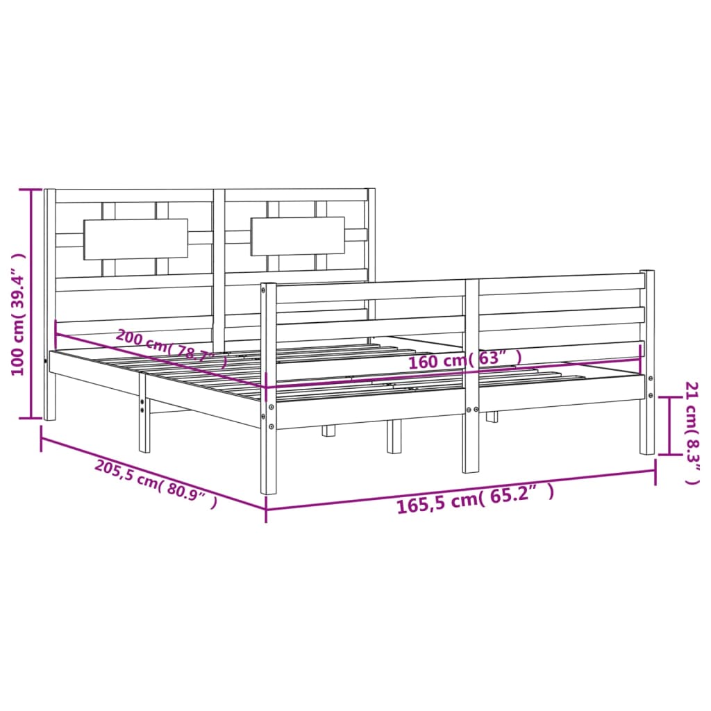 Giroletto con Testiera Ambra 160x200 cm Legno Massello 3194454