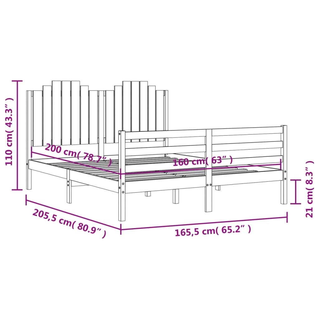 Giroletto con Testiera Nero 160x200 cm Legno Massello 3194195