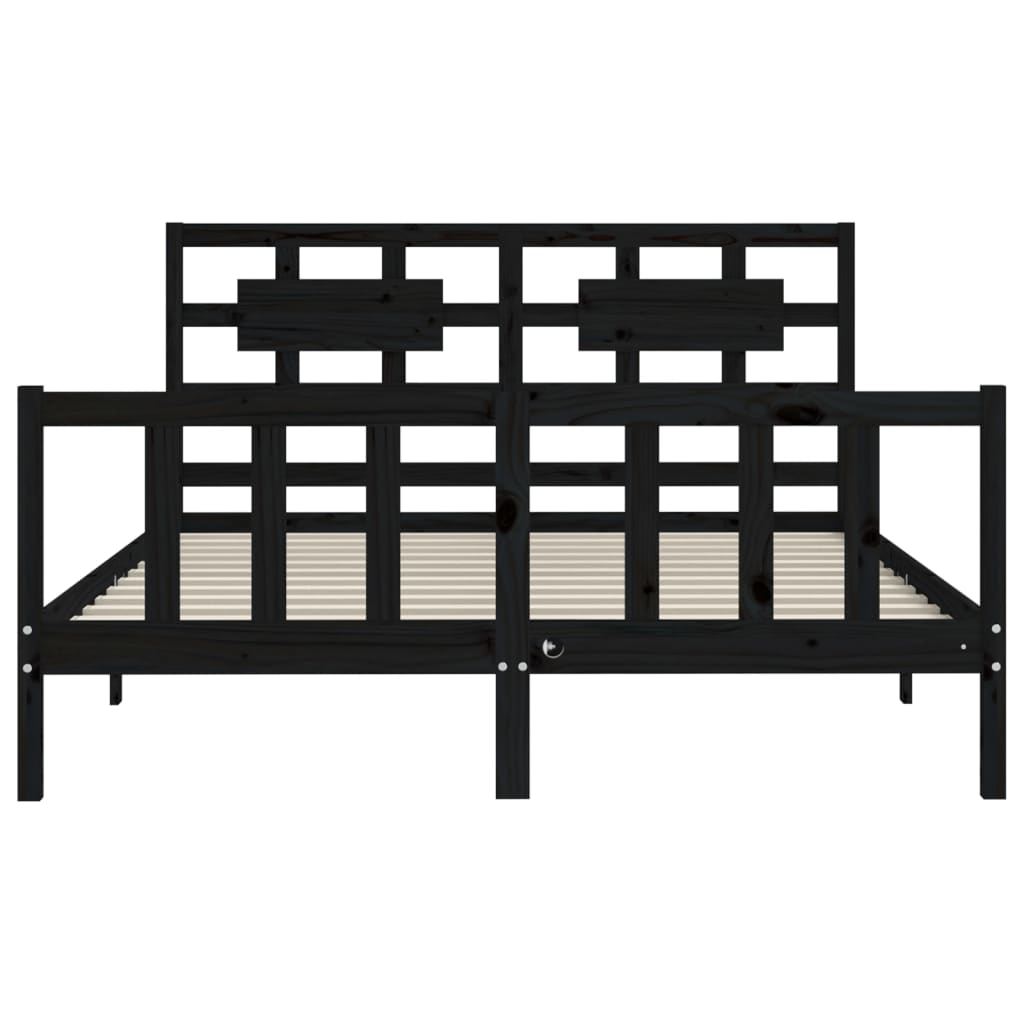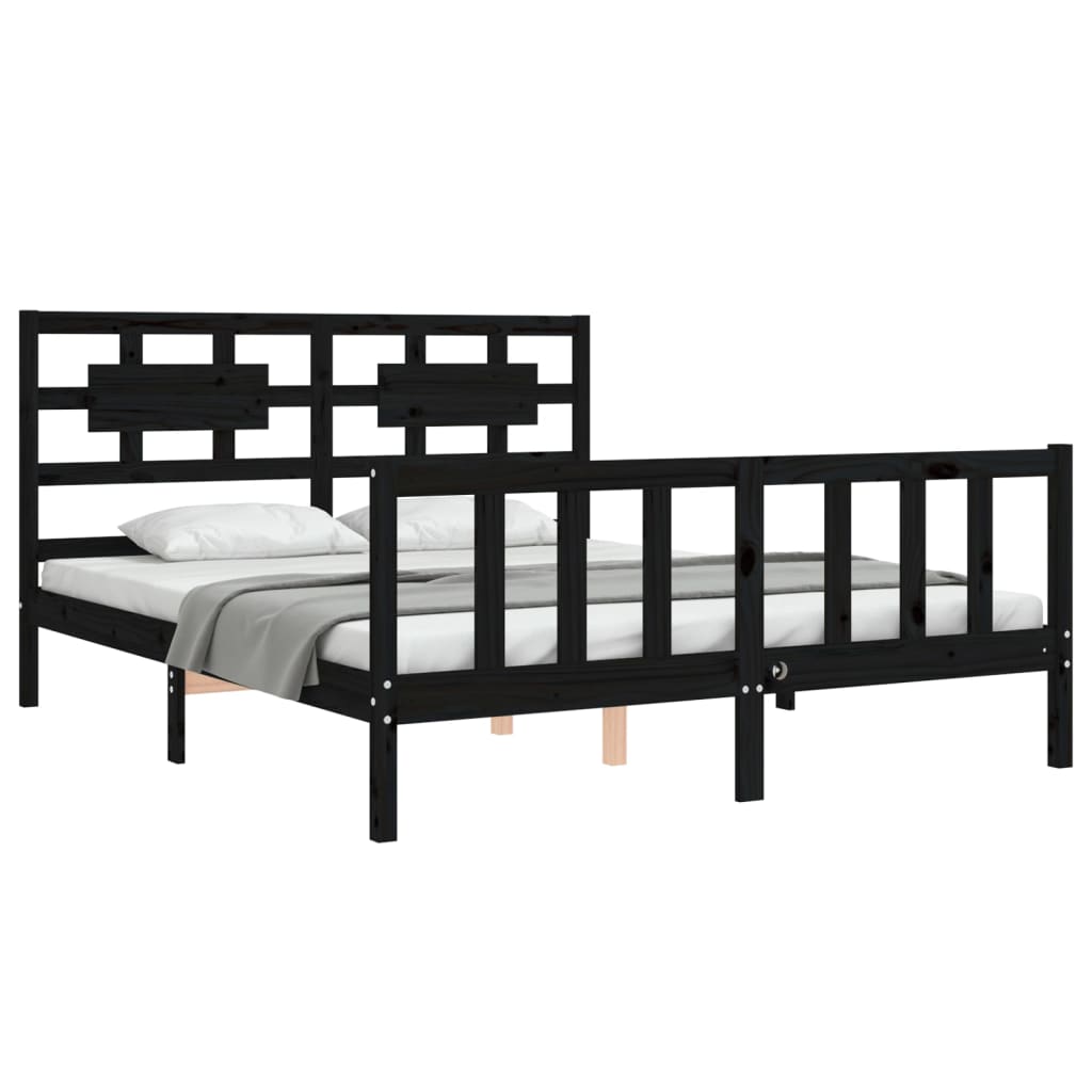 Giroletto con Testiera Nero King Size in Legno Massello 3192565