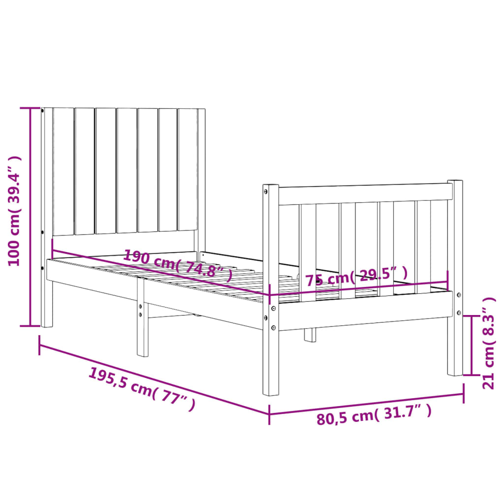- Dimensioni del materasso adatto (materasso non incluso): 75 x 190 cm (L x L) (2FT6 Small Single)