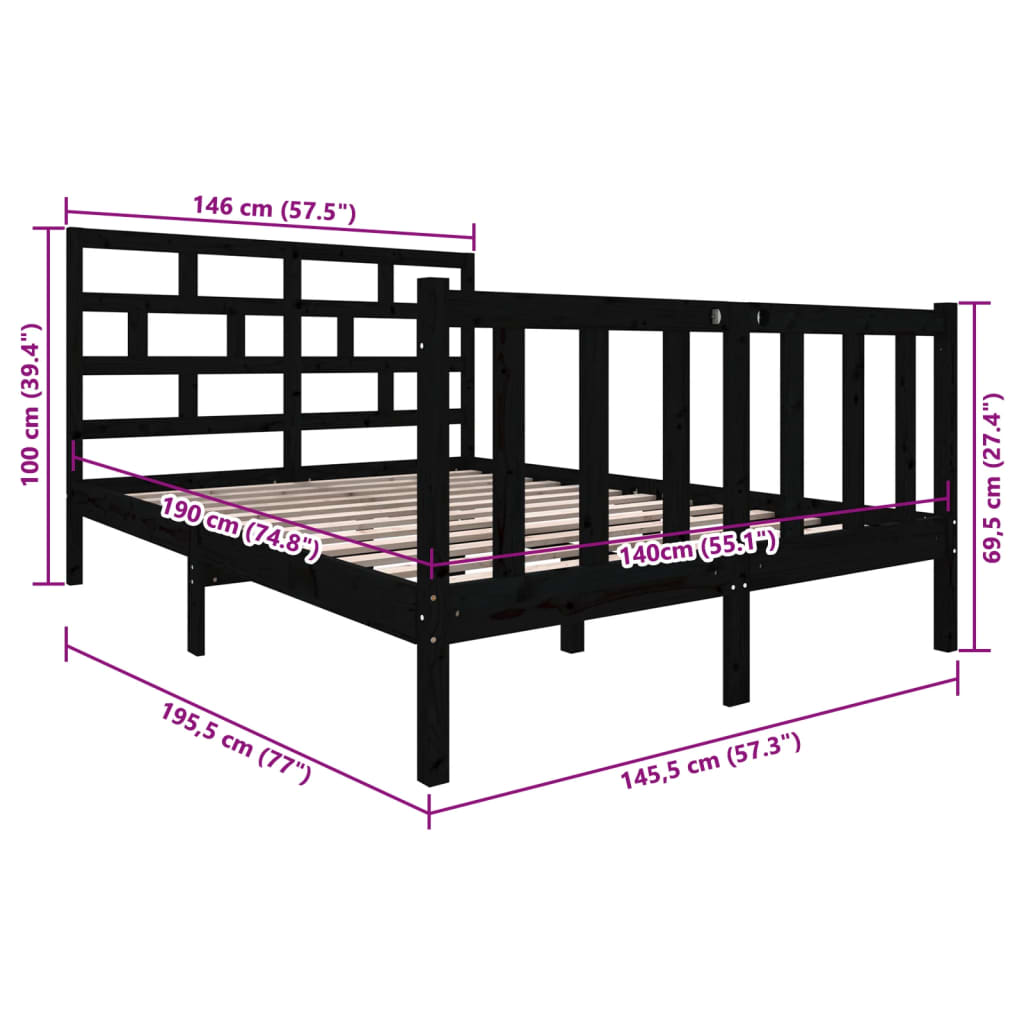 Giroletto Nero in Legno Massello di Pino 140x190 cm 3101332
