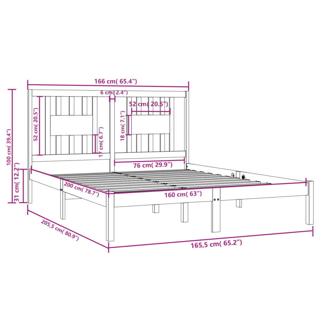 Giroletto Nero in Legno Massello di Pino 160x200 cm 3104077