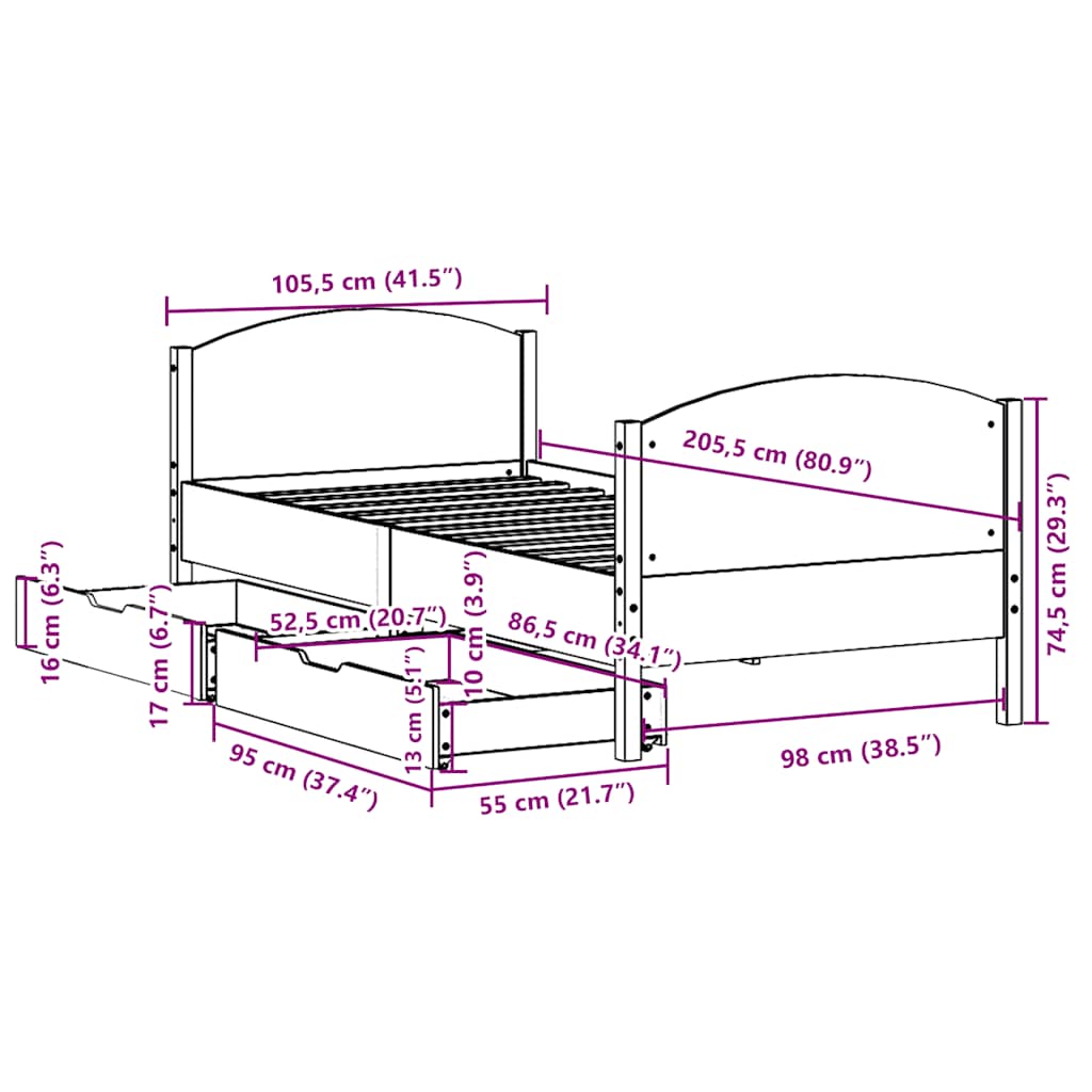 Giroletto senza Materasso 100x200 cm in Legno Massello di Pino 3301803