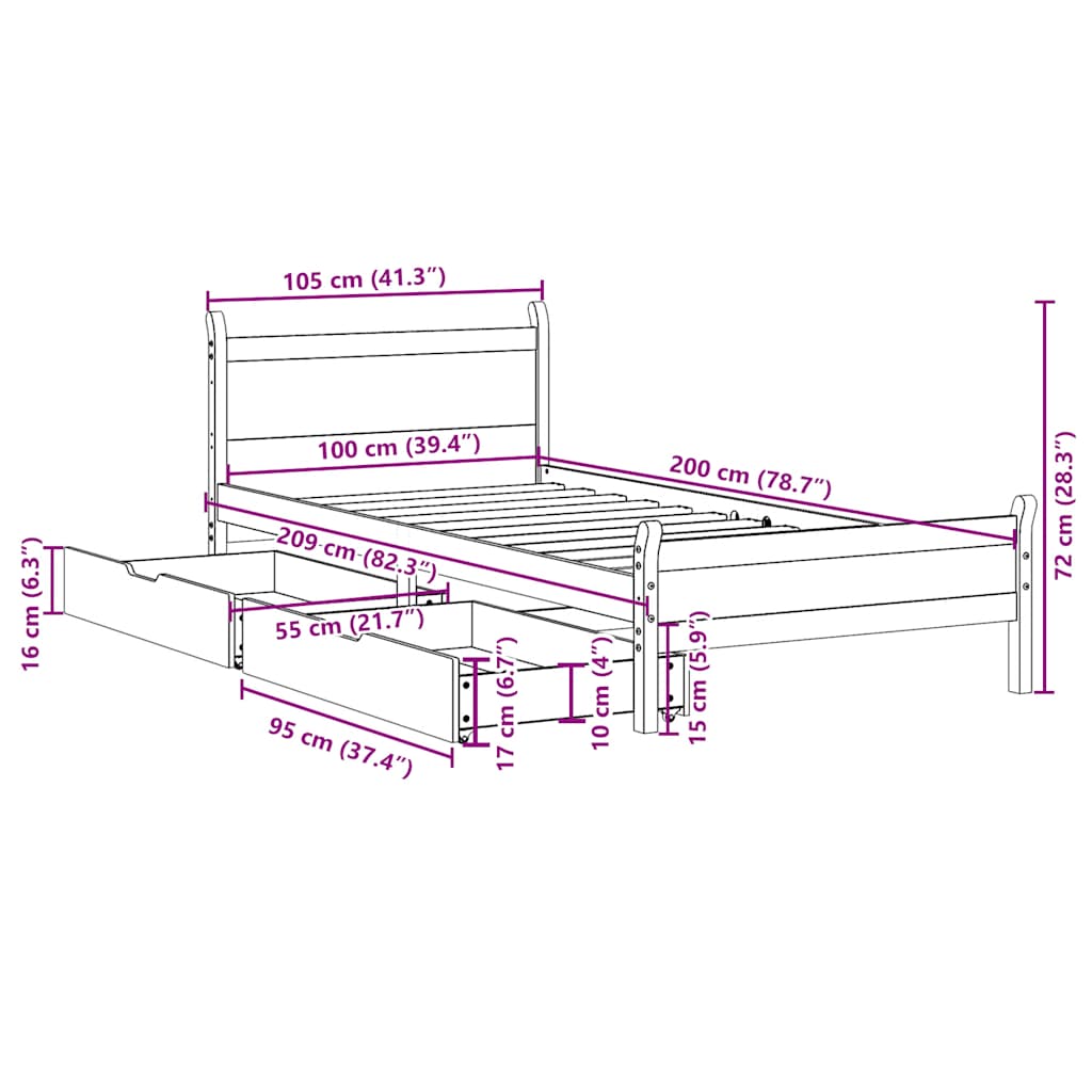 - Dimensioni materasso adatto: 100 x 200 cm (L x L) (materasso non incluso)